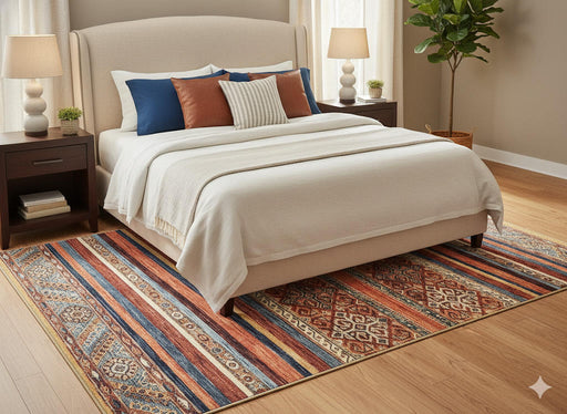 5' x 7' Turquoise/Ivory/Orange/Red/Black -Faded, Allover Floral Distressed Area Rug Swirls Area Rug Abstract, Floral Area Rug