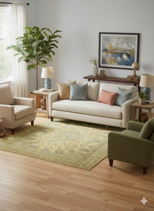 View full details5' x 7' Rectangle Warm Gold / Antique Yellow Distressed Floral Traditional Area Rug
