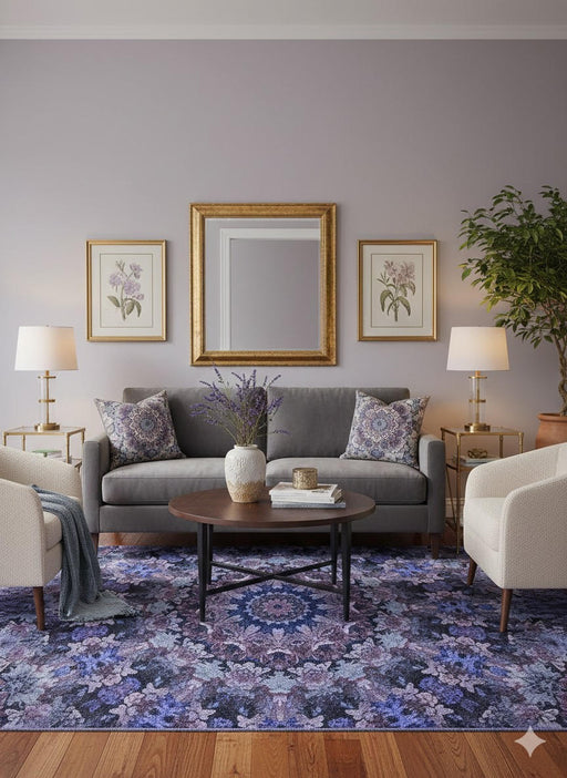 View full details5' x 7' Purple Indigo Blue Floral Medallion Vintage-Style Area Rug