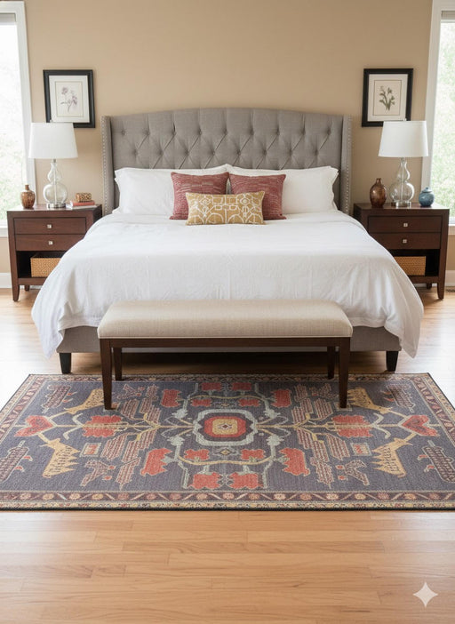 View full details5' x 8' Navy Blue Gold Light Gray Celestial Pattern Vintage Rectangular Area Rug