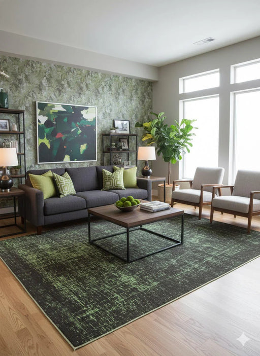 8' x 10' Forest Green Black Charcoal Abstract Washable Area Rug Product Details Chenille-Polyester Pile; Non-Slip Backing, Power Loomed; Pile He...