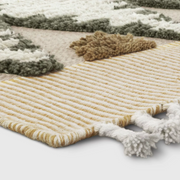 Add functional decor and an inviting pop to your indoor space with this gorgeous Meadowsweet Diamond Tufted Rug from Opalhouse™. Crafted from a soft cotton blend, this rectangular area rug comes in a medium pile construction for a comfy, cozy feel underfoot, while the geometric pattern adds chic appeal to your decor. Featuring a colorful diamond pattern in contrasting shades, this handmade rectangular rug adds a pop of color, and the tufted detailing lends textural flair to your floor space. Striped trim and tassel detailing complete the look.