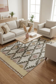 5'X7' Color Cream Diamond Hand Made Tufted Rug