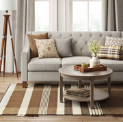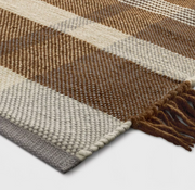 Add dimension to any space in your home with the Merrimack Plaid Fringe Rug from Threshold™. This brown plaid rug features neutral colors to easily coordinate with your existing decor. This handmade flat-pile rug can be placed in your living room to pull the space together or added to an entryway for a touch of softness underfoot. A touch of fringe along the sides adds extra texture for additional style.