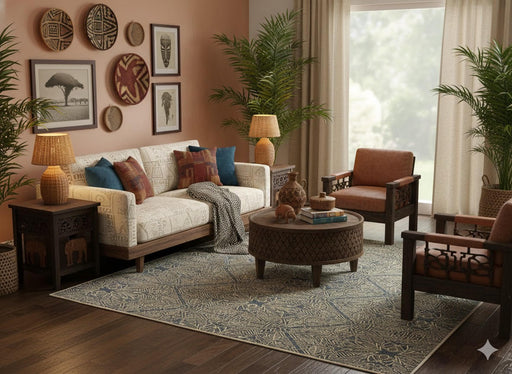 5' x 8' Rectangular Blue Beige Ivory Geometric Tribal Area Rug Product Details Our Blend – Super-Soft Cloud Flannel Material Power Loomed; Pile ...