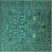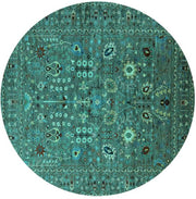 Round 8ft Turquoise Oriental Industrial Area Rug