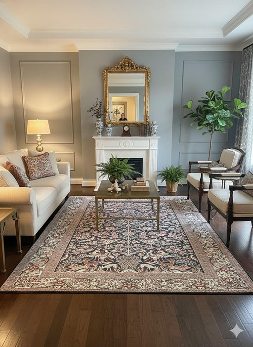 View full details7' x 7' Square Deep Muted Navy Rust Red & Gold Washable Area Rug