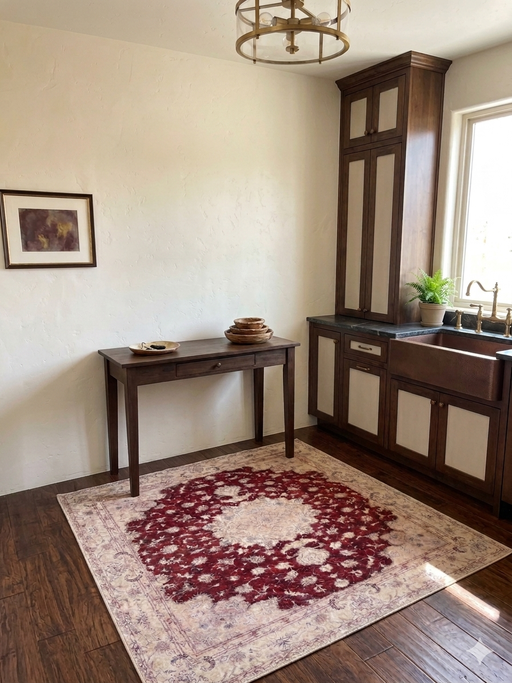 View full details5' x 8' Rectangular Red Blue Floral Medallion Traditional Persian Washable Area Rug