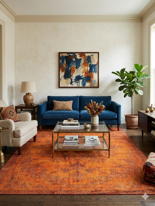 View full details6' x 9' Rectangular Blue Orange Geometric Modern Area Rug
