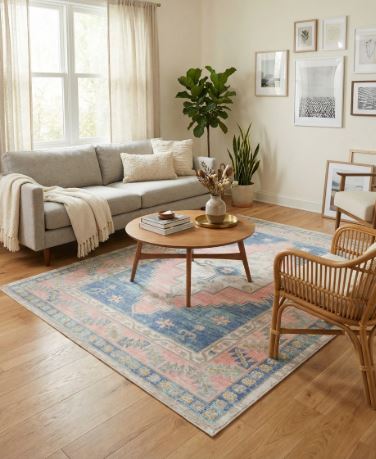 View full details5' x 7' Ivory/Cream Blush Pink Washable Abstract Vintage Area Rug