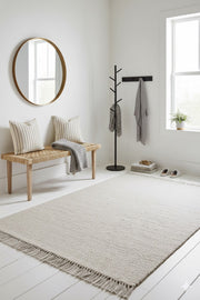 Upgrade your interior with this Bleached Jute with Fringe Rug from Hearth & Hand™ with Magnolia. Featuring an allover textured design in gray with coordinating tassels on either end, this decorative runner rug adds a combination of simple comfort and timeless style to your existing decor. Crafted from jute, this woven area rug is durable for lasting use, and the latex/cotton backing helps provide secure footing. A must-have addition to your interior, this jute runner rug features a flat-pile construction, making it highly versatile and easy to place in your living room, entryway and more.