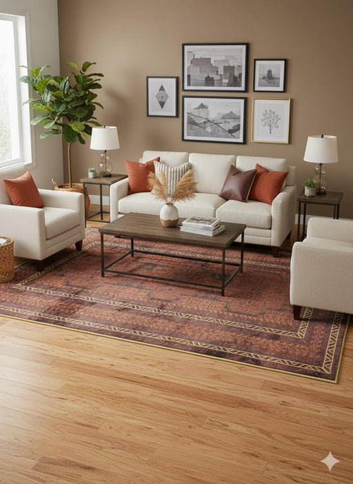 5' × 7' Rectangular Dark Brown Rust Geometric Tribal Area Rug Product Details Our Blend – Super-Soft Cloud Flannel Material Power Loomed; Pile H...