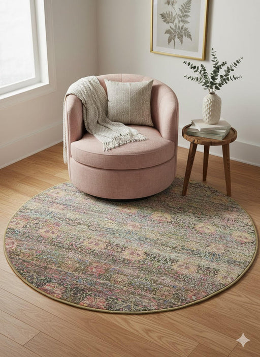 View full details5' Round Multi Color Distressed Floral Bohemian Washable Area Rug