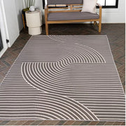 5' x 7.6', Dark Gray/Cream, Mid-Century Modern Curve Stripe Reversible Machine-Washable Indoor/Outdoor Area Rug