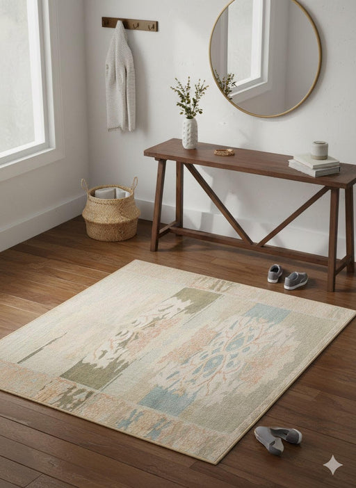 View full details4' x 4' Square Multi Color Ikat Abstract Transitional Area Rug