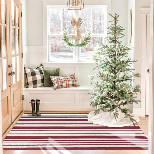 KOZYFLY Striped Outdoor Rug 4x6 Ft Red and White Front Door Rug Hand Woven Area Rug Washable Outdoor Doormats Outdoor Entrance Mat for Front Door K...