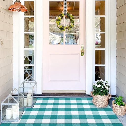 Buffalo Plaid Outdoor Rugs, 3'x5' Green and White Checkered Indoor/Outdoor Area Rug, Layering Rug for Hello/Welcome Door Mat, Washable Cotton Woven...