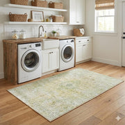 4' x 6' Green Distressed Washable Non-Slip Backing Area Rug