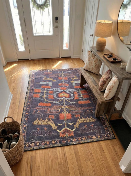 View full details7' x 7' Square Deep Muted Navy Rust Red & Gold Washable Area Rug